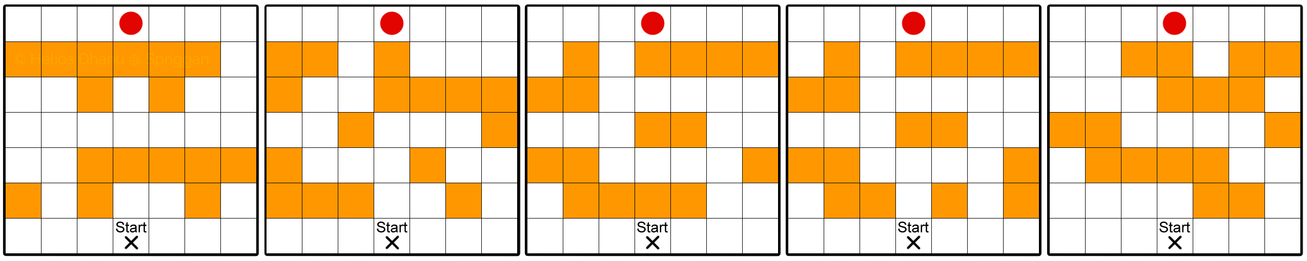 - Selon votre nombre total de pas, et où les gardes se dirigent, vous serez assigné à commencer sur une certaine case et vous devrez remonter vers la case "End" :