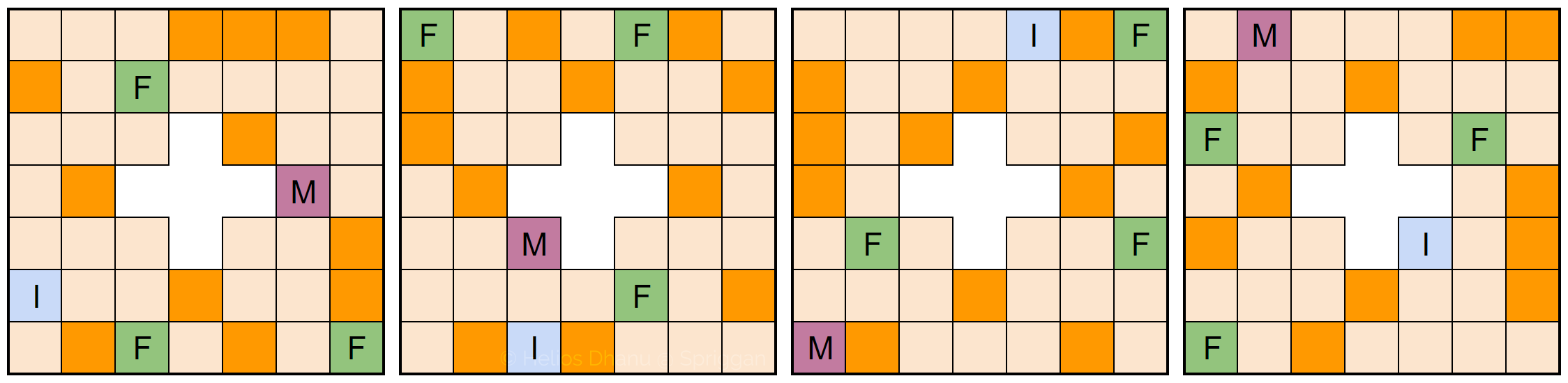4 possibilités différentes | F = Crapaud (Frog) ; M = Mini ; I = Glace (Ice)