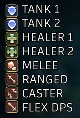 - Composition standard d'une équipe : 2 tanks, 2 soigneurs, 1 melee, 1 distant, 1 mage & 1 FLEX (n'importe) DPS
