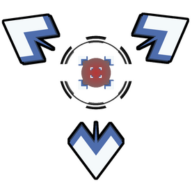 - 4 Gardes apparaissent & 2 par 2, ils vont marcher un nombre de pas indiqué en haut de leur tête, puis utiliser une AoE en forme de croix. Ceci se fait en deux temps :